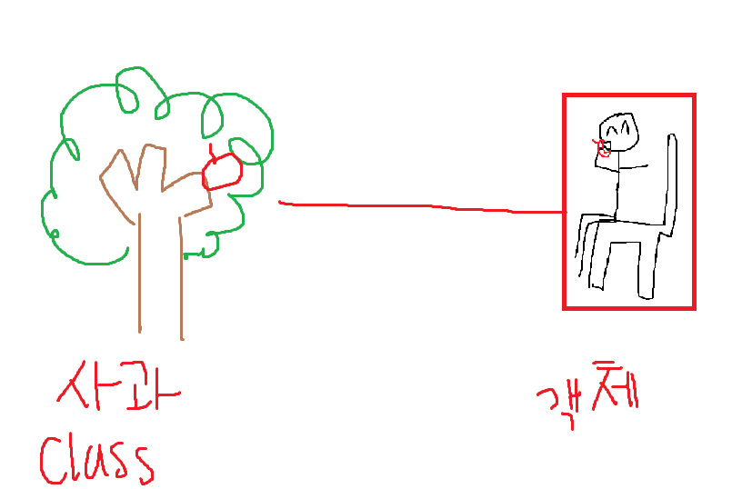 지금 의자에서 먹고있는 사과(객체)는 사과 클래스에 속해있다고 말할 수 있다.