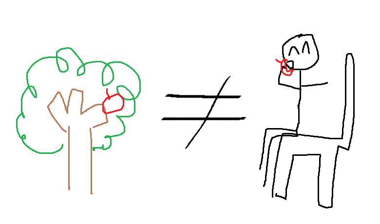 쫄라맨이 의자에 앉아서 먹고있는 "사과"를 가리킬 때는 엄연히 다르다.